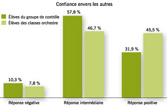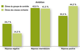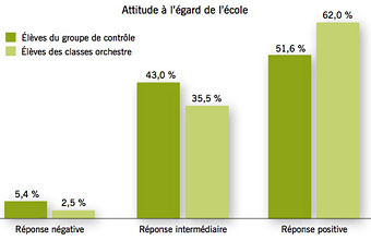 AccueilExpressions par MontaigneLes orchestres à l’école : un impact très fort sur les élèvesLa plateforme de débats et d’actualités de l’Institut Montaigne Éducation26/11/2010ImprimerPARTAGERLes orchestres à l’école : un impact très fort sur les élèvesAuteur Maylis Brandou Directrice adjointe L’Institut Montaigne a commandé au département d’économie de Sciences Po une étude afin d’évaluer l’impact des orchestres à l’école sur les élèves. Un orchestre à l’école est un dispositif transformant une classe entière en orchestre pendant 3 ans (du CE2 au CM2 ou de la 5ème à la 3ème). Les zones défavorisées et les élèves en difficulté sont particulièrement ciblés pour la mise en place des orchestres à l’école. Aujourd’hui, et après 11 années d’existence du dispositif, 510 orchestres à l’école permettent à près de 14 000 élèves de jouer d’un instrument.Les conclusions de cette étude, reprises dans la dépêche AEF n° 141071 du mardi 23 novembre, sont sans appel : en montrant l'impact des orchestres sur le développement des capacités non-cognitives, l'étude confirme que l'orchestre à l'école est un moyen de réduire l'inégalité des chances parmi les enfants issus de milieux défavorisés.Quelles sont ces conclusions ?- Participer à un orchestre influence de manière positive l'évolution de la moyenne générale. La note moyenne augmente continûment durant la première année du programme - entre la 6e et la 5e (évolution de la note moyenne d'environ 0,45 point, soit 12,5/20 au lieu de 12/20) - ainsi que durant l'ensemble de la scolarité, entre la 6e et la 3e. - Participer à un orchestre améliore également de manière significative l'évolution de la note de vie scolaire entre la 6e et la 5e d'environ 0,6 à 0,8 point (soit 17,4/20 au lieu de 16,6/20). Les données sont cependant insuffisantes à ce stade pour évaluer l'impact sur la note de vie scolaire à plus long terme.- Participer à un orchestre augmente la probabilité de répondre positivement à des questions évaluant l'attitude des élèves à l'égard de l'école ainsi que l'ambition des élèves, et ce d'autant plus que les élèves sont jeunes (5e ou 4e). - Participer à un orchestre augmente la probabilité de répondre positivement à des questions évaluant la confiance qu'ont les élèves vis-à -vis des autres élèves et des adultes. Ce résultat est particulièrement mesurable dans les collèges en zone rurale. L’étude met en lumière la nécessité de mettre en place des programmes qui développent les capacités non-cognitives chez des enfants qui ne sont pas autant stimulés que des enfants issus de milieux favorisés. Ces premiers résultats montrent également que l’impact sur les capacités cognitives et non-cognitives des élèves est d’autant plus significatif que les élèves sont jeunes. Or 60% des orchestres sont actuellement mis en place dans des écoles primaires. Afin de vérifier cette hypothèse et d’approfondir ces résultats, l’Institut Montaigne et le département d’économie de Sciences Po lanceront une nouvelle évaluation à la rentrée 2011, rigoureusement basée sur les principes de l’évaluation aléatoire.Lire l'étude d'impact des orchestres à l'école et son résuméLe site de l'associationImprimerPARTAGER